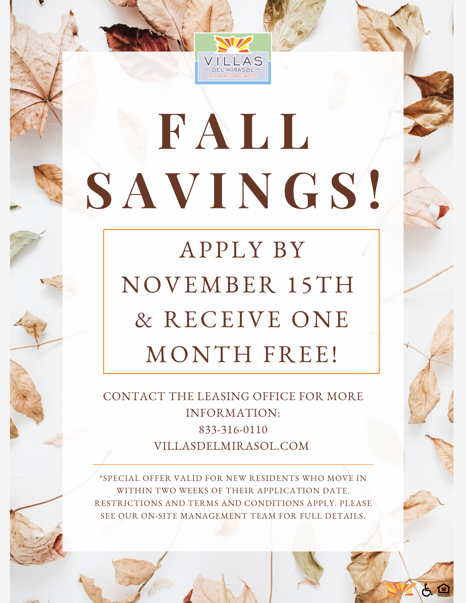 Apply by November 15th & receive one month free! Contact the leasing office for more information!⤵️ ¡Solicita antes del 15 de noviembre y recibe un mes gratis! Contacta con la oficina de arrendamiento para más información.⤵️